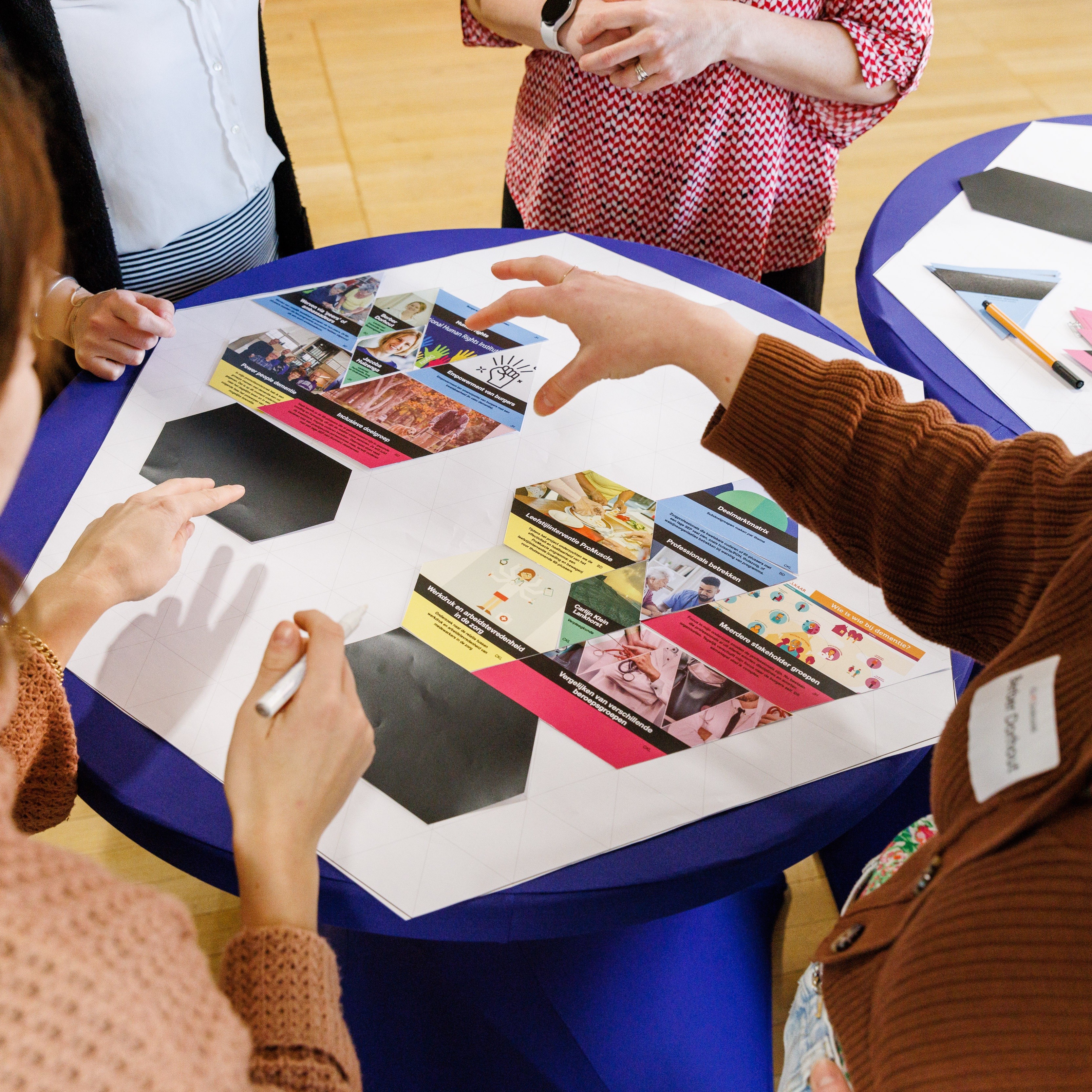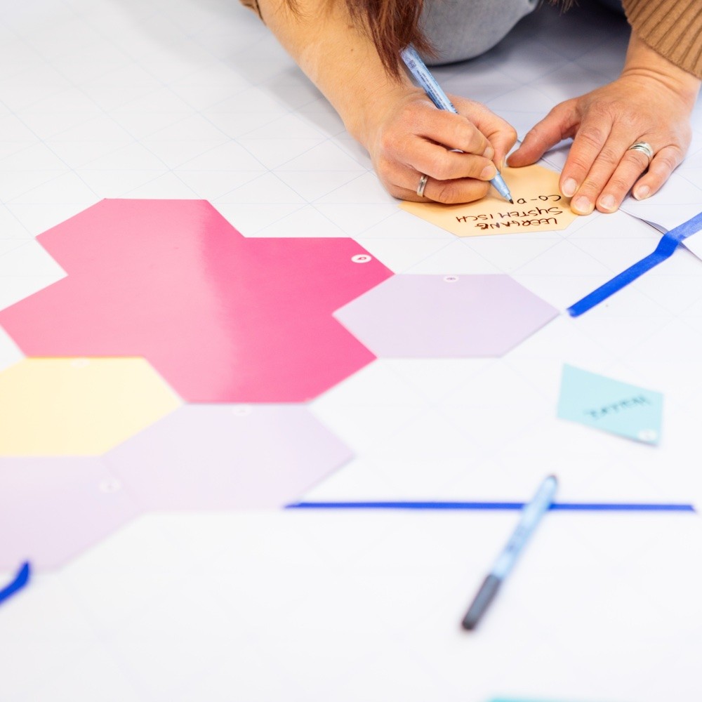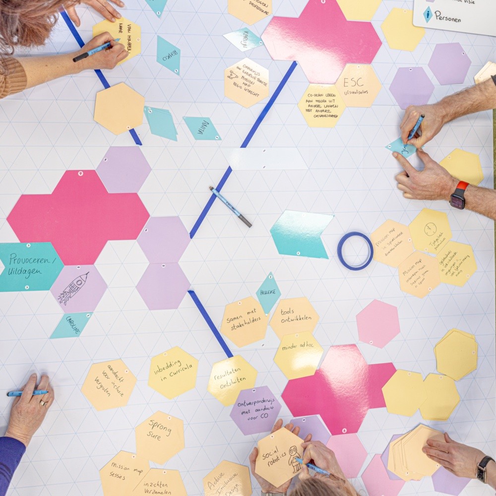 In kleinere groepjes gaan jullie op zoek naar patronen in de bouwstenen. Waar zit overeenkomst, en waar zit gedeelde ambitie? Zo ontstaan eilandjes, ieder met een andere invalshoek binnen de overkoepelende missie.